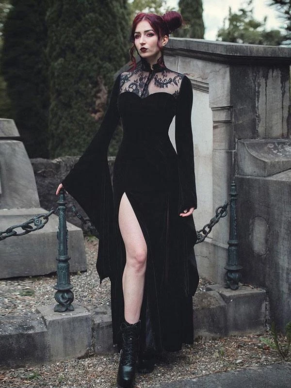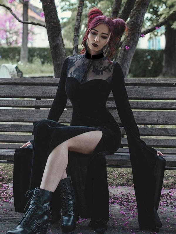 Be the first to review “Black Gothic Dress Bell Long Sleeves Lace Lolita Dress” Cancel reply
