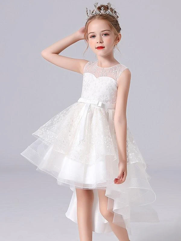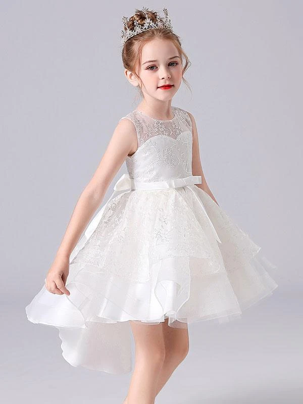 White Flower Girl Dress Chiffon Pleated One-Shoulder Sleeveless Kids Birthday Party Dresses