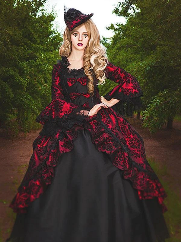 Be the first to review “Burgundy Retro Costumes Women’s Lace Ruffles Polyester Tunic Dress Retro Marie Antoinette Costume Party Prom Dress” Cancel reply