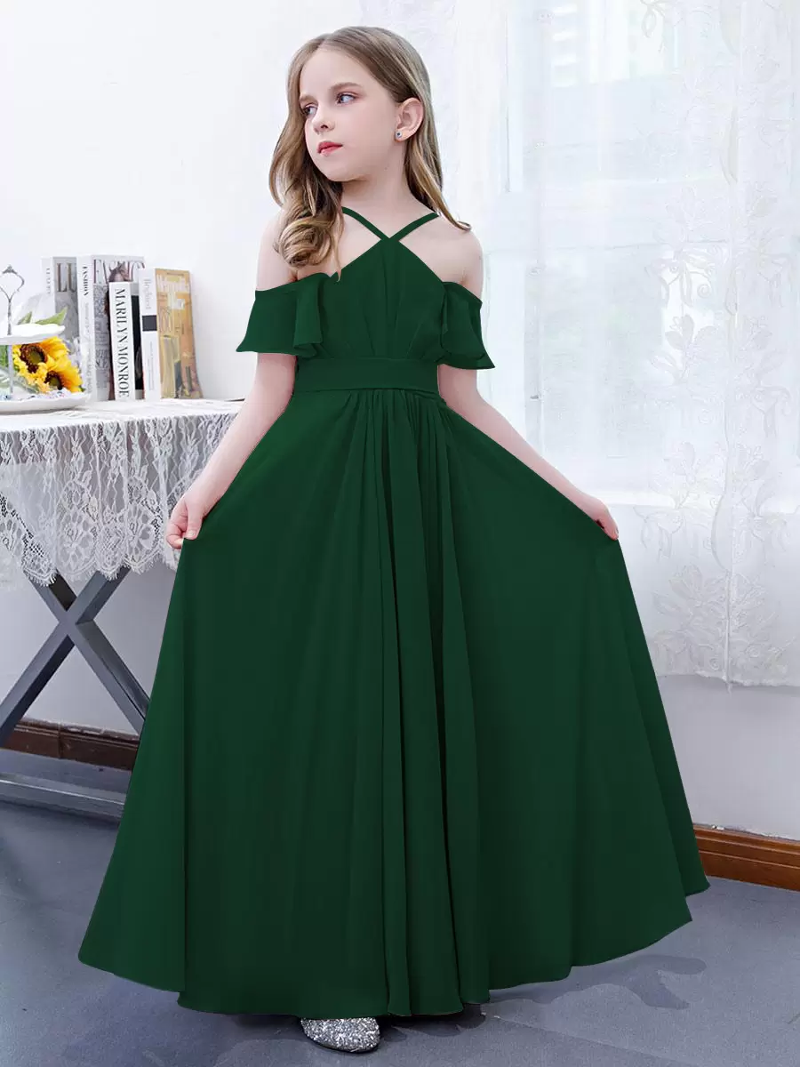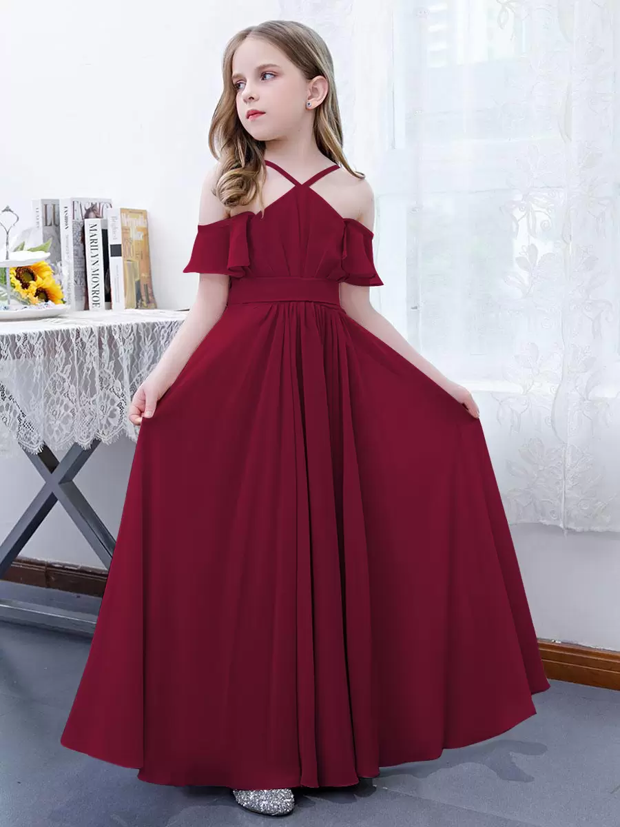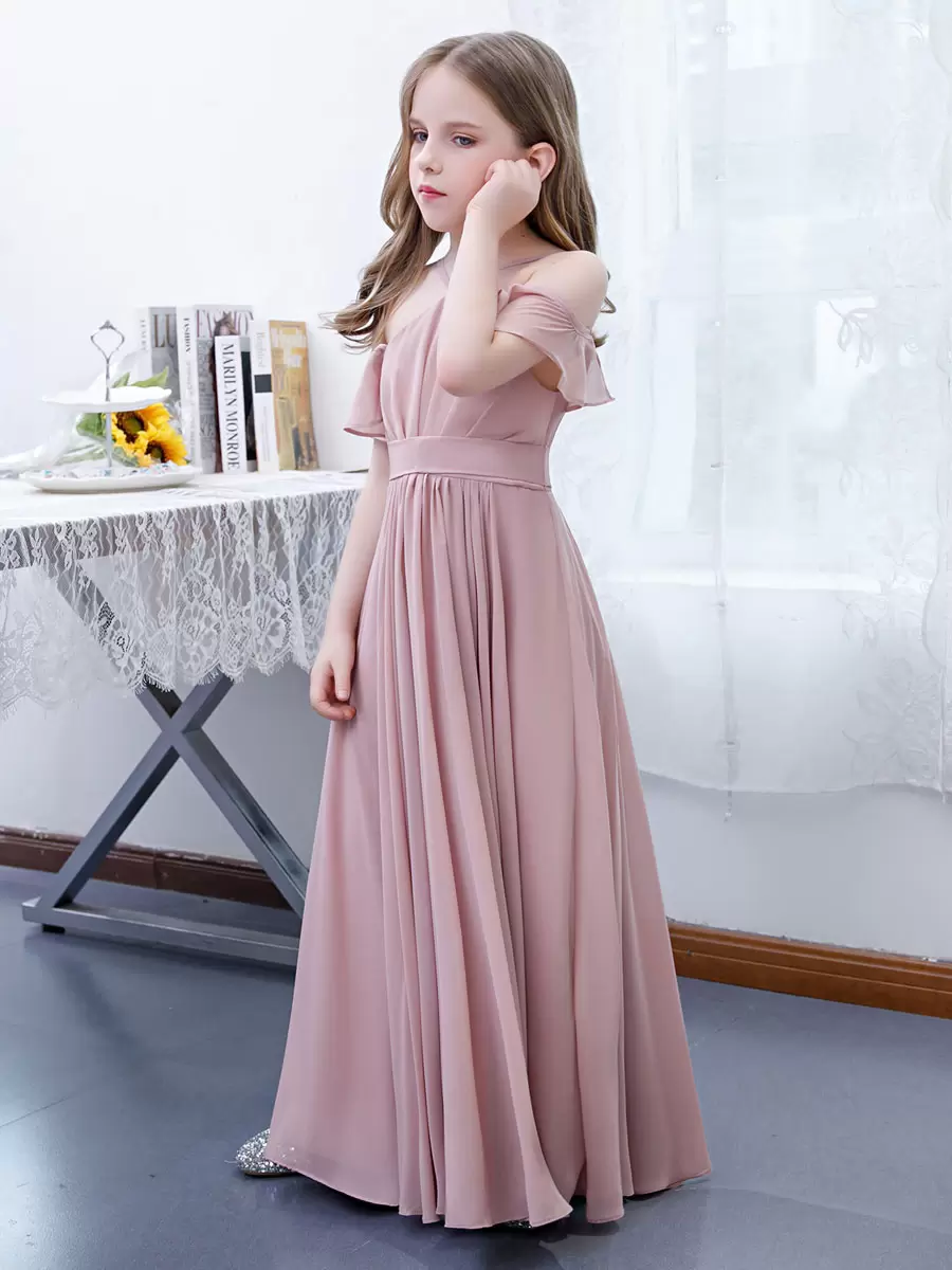 Be the first to review “Cameo Pink Flower Girl Dress Chiffon Pleated Off-The-Shoulder Sleeveless Kids Birthday Party Dresses” Cancel reply