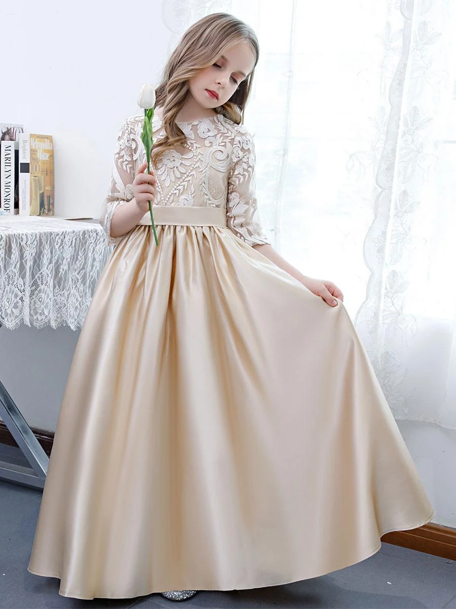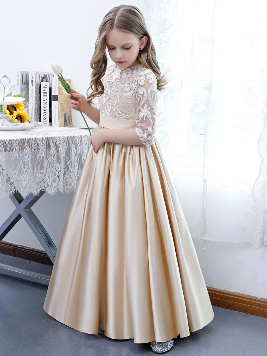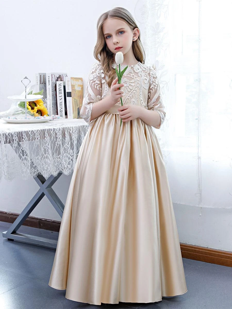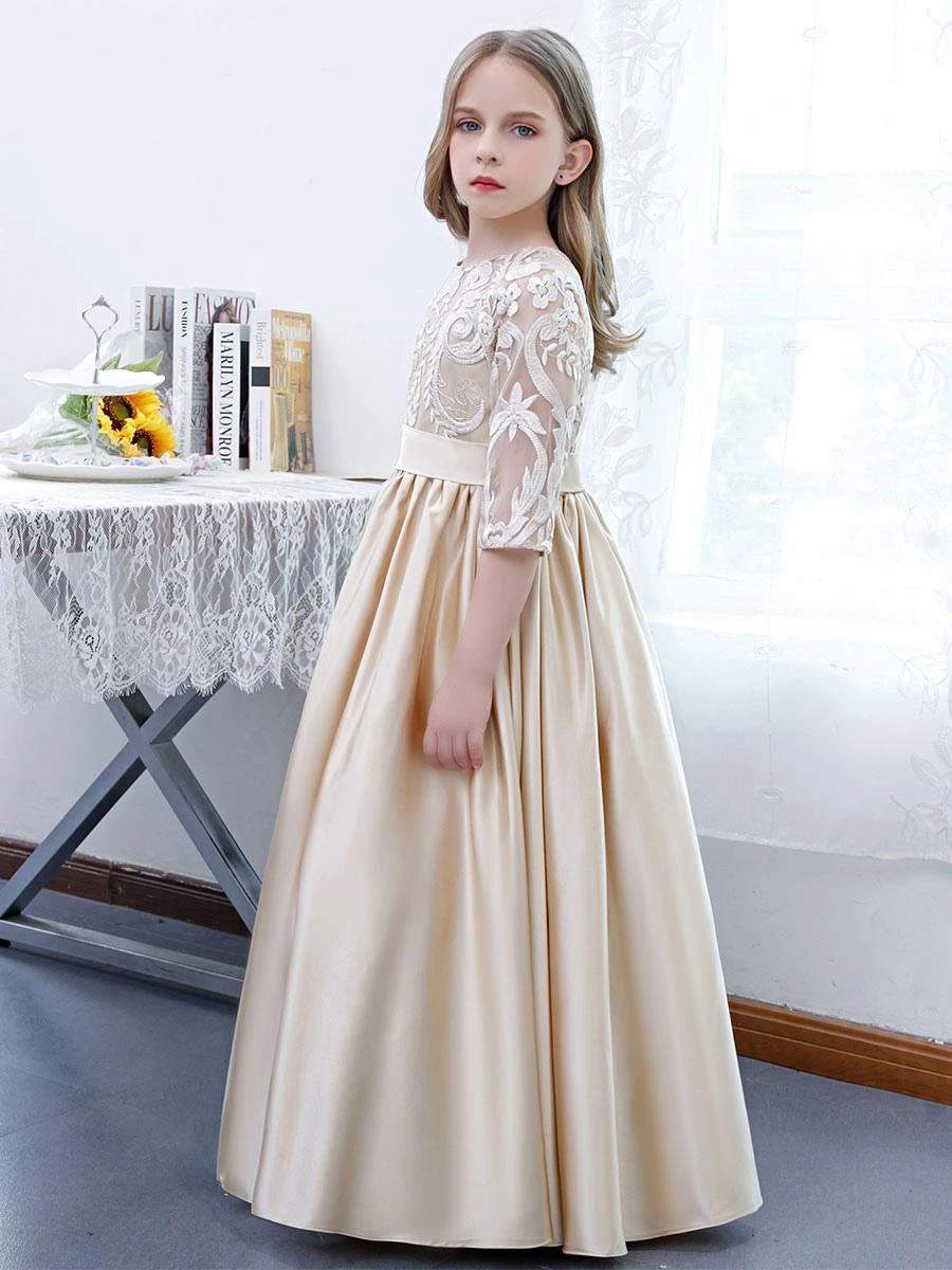 Be the first to review “Champagne Flower Girl Dress Lace Jewel Neck Half Sleeves Kids Birthday Party Dresses” Cancel reply