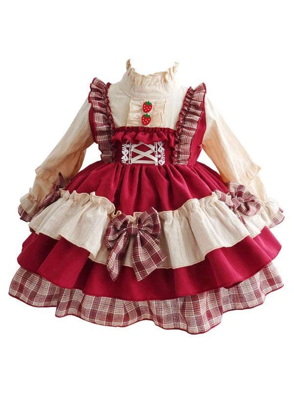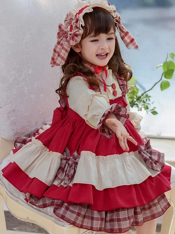Be the first to review “Children’s Sweet Lolita Dress Headwear Red Bow Strawberry Button Ruffles Polyester Long Sleeve Kids One Piece Dress” Cancel reply