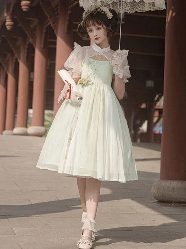 Be the first to review “Chinese Style Lolita Dress Ruffles Sleeveless Polyester Sweet Light Green Chinese Style Lolita” Cancel reply