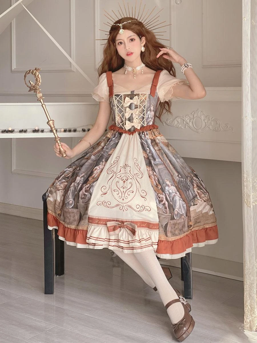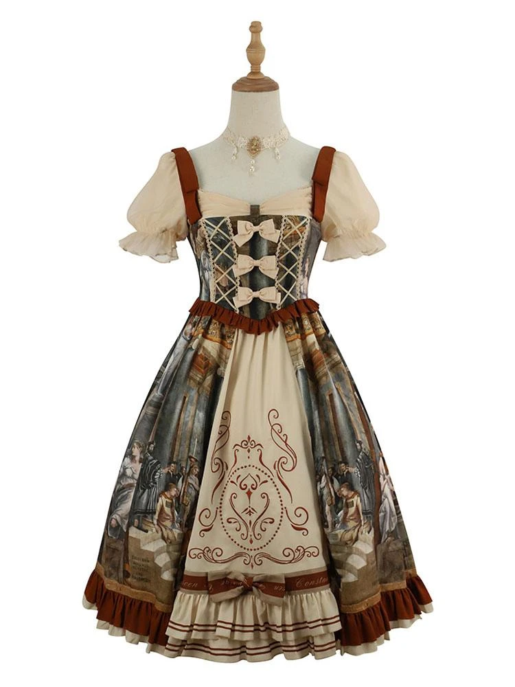 Be the first to review “Classic Lolita Dress Bows Printing Short Sleeves Coffee Brown Lolita JSK Dress” Cancel reply