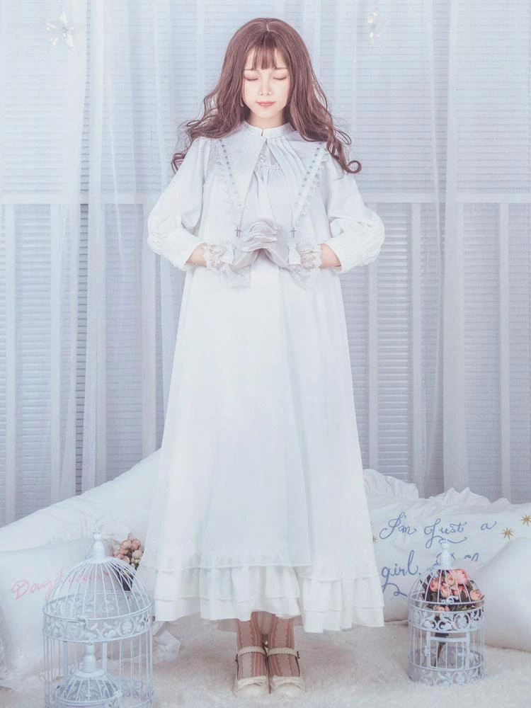 Be the first to review “Classic Lolita OP One Piece Dress Stand Collar Long Sleeve Frills Ruffles White Lolita Dresses With Bows” Cancel reply