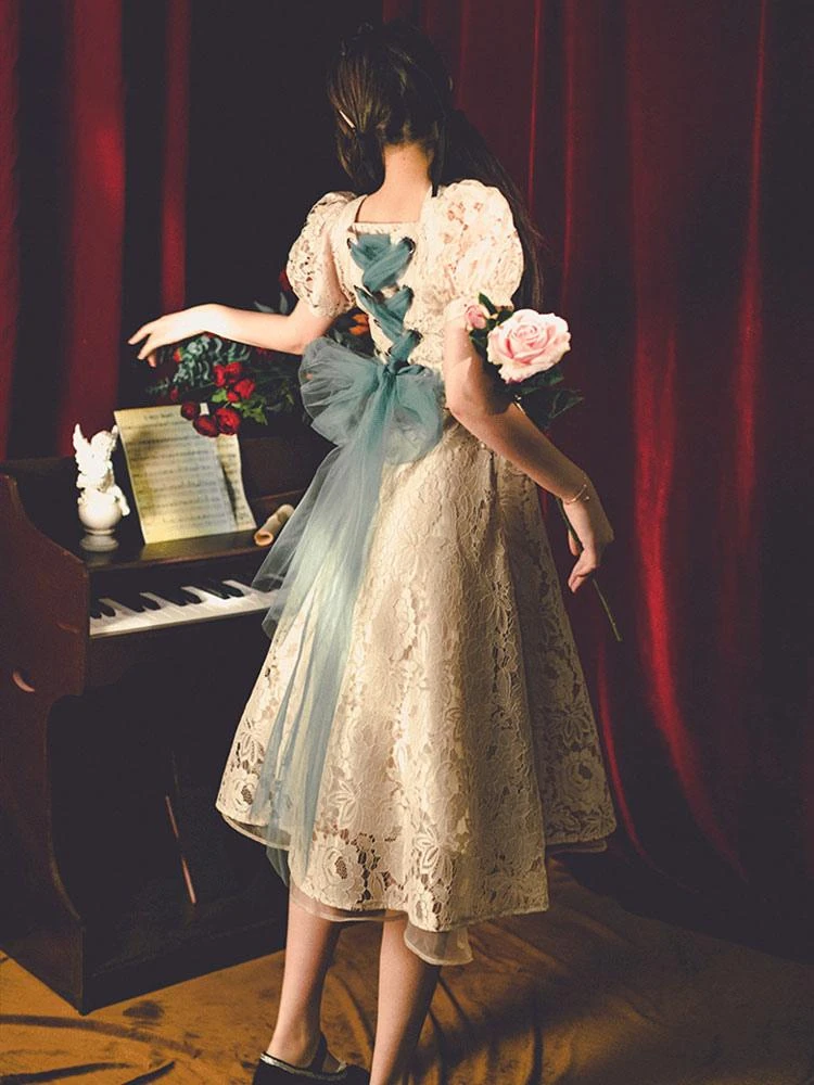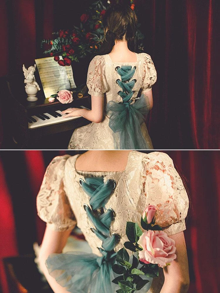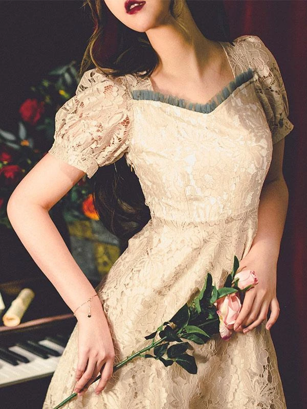 Be the first to review “Classic Lolita Retro Dress Lace Up Bows Short Sleeve Light Apricot Lolita OP Dress” Cancel reply