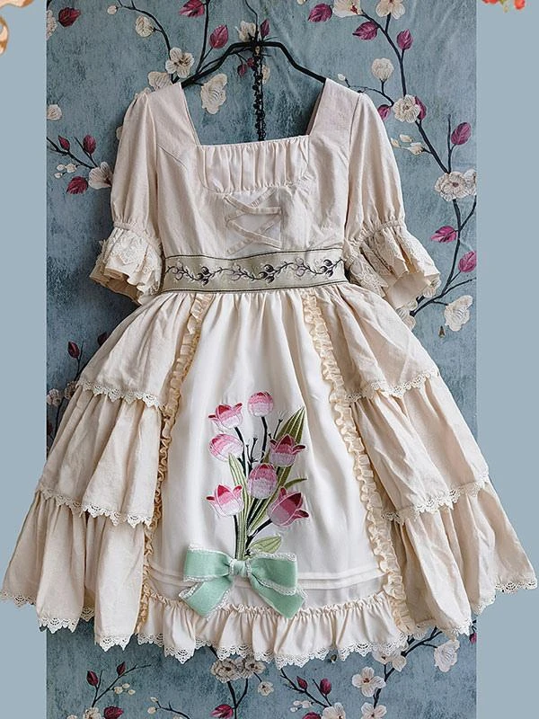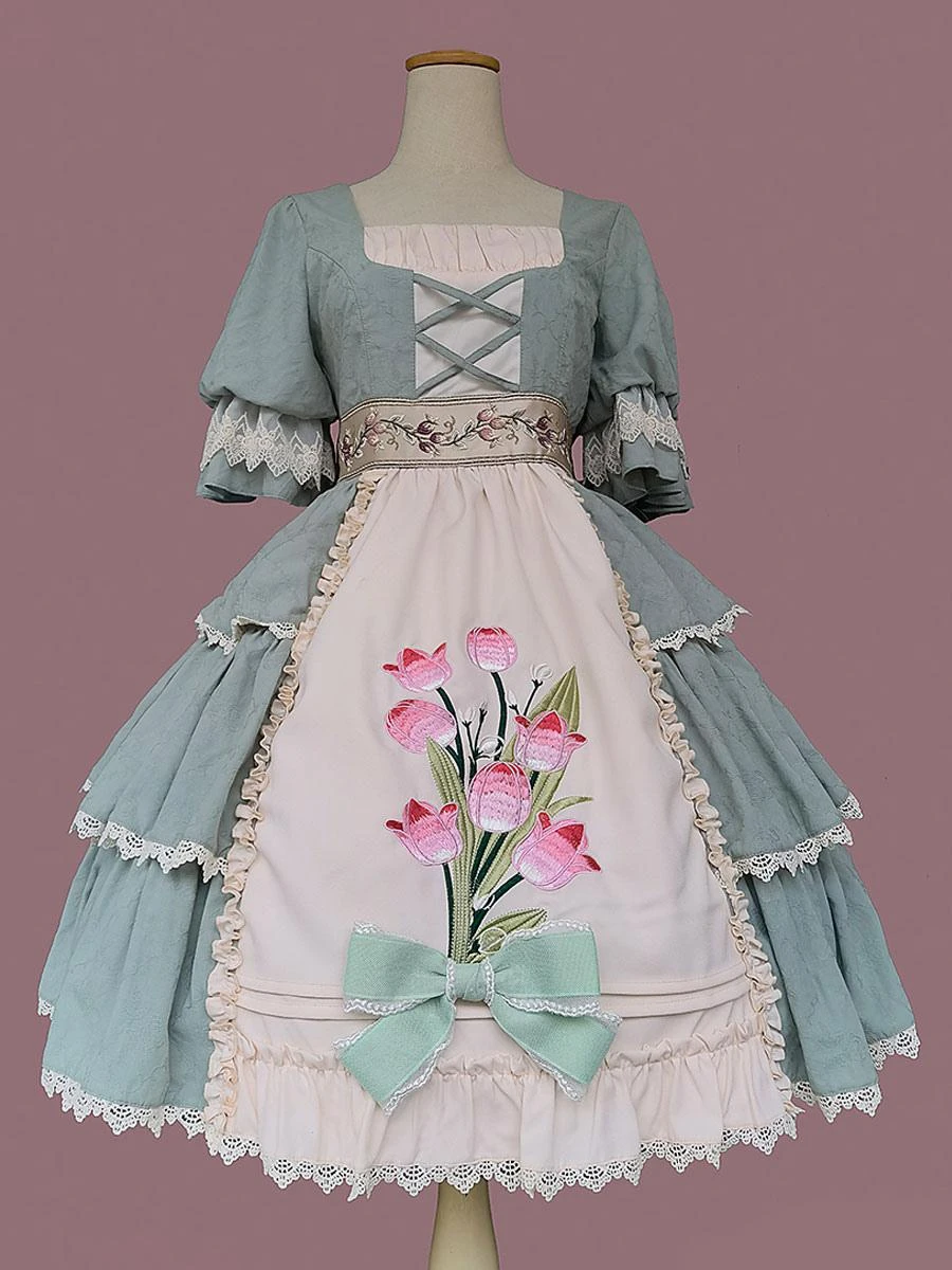 Be the first to review “Classical Lolita Dress Cotton Ruffles Lolita Dresses Short Sleeves Floral Print Sage” Cancel reply