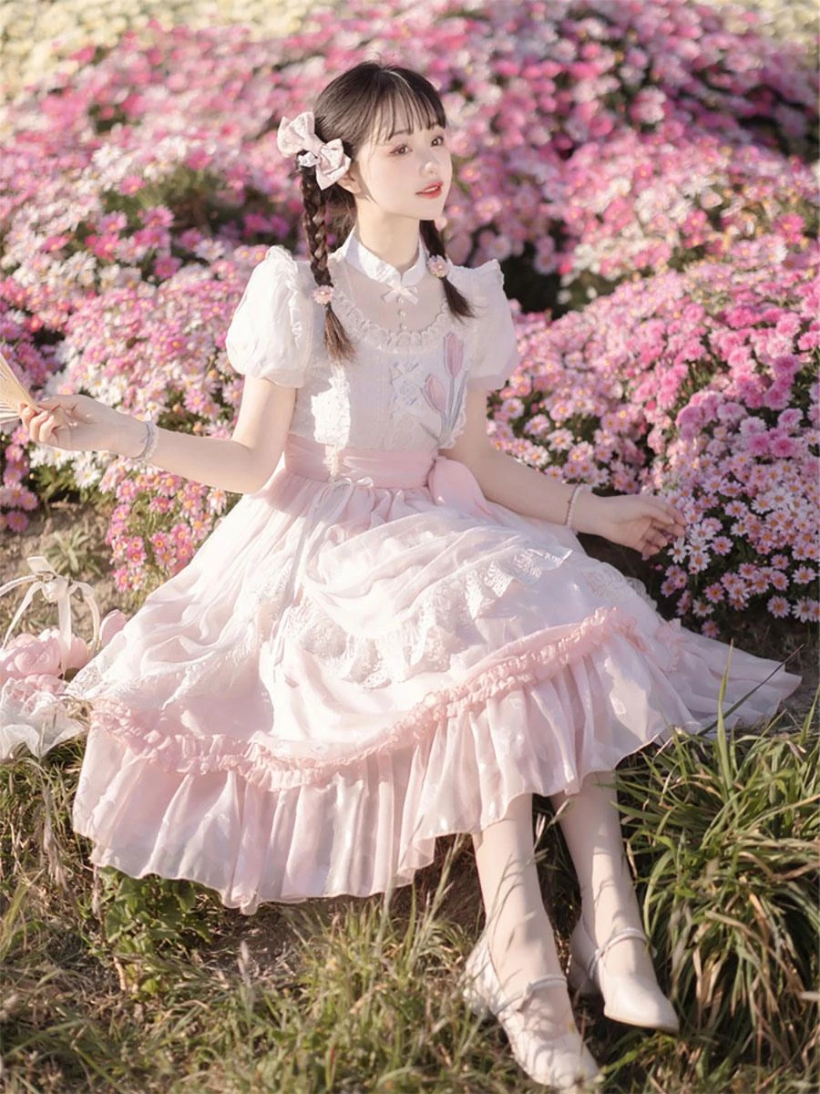 Be the first to review “Classical Lolita Dress Polyester Short Sleeves Lolita Dresses Floral Print Classic Pink” Cancel reply