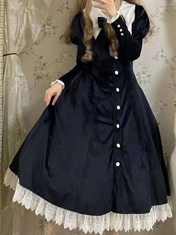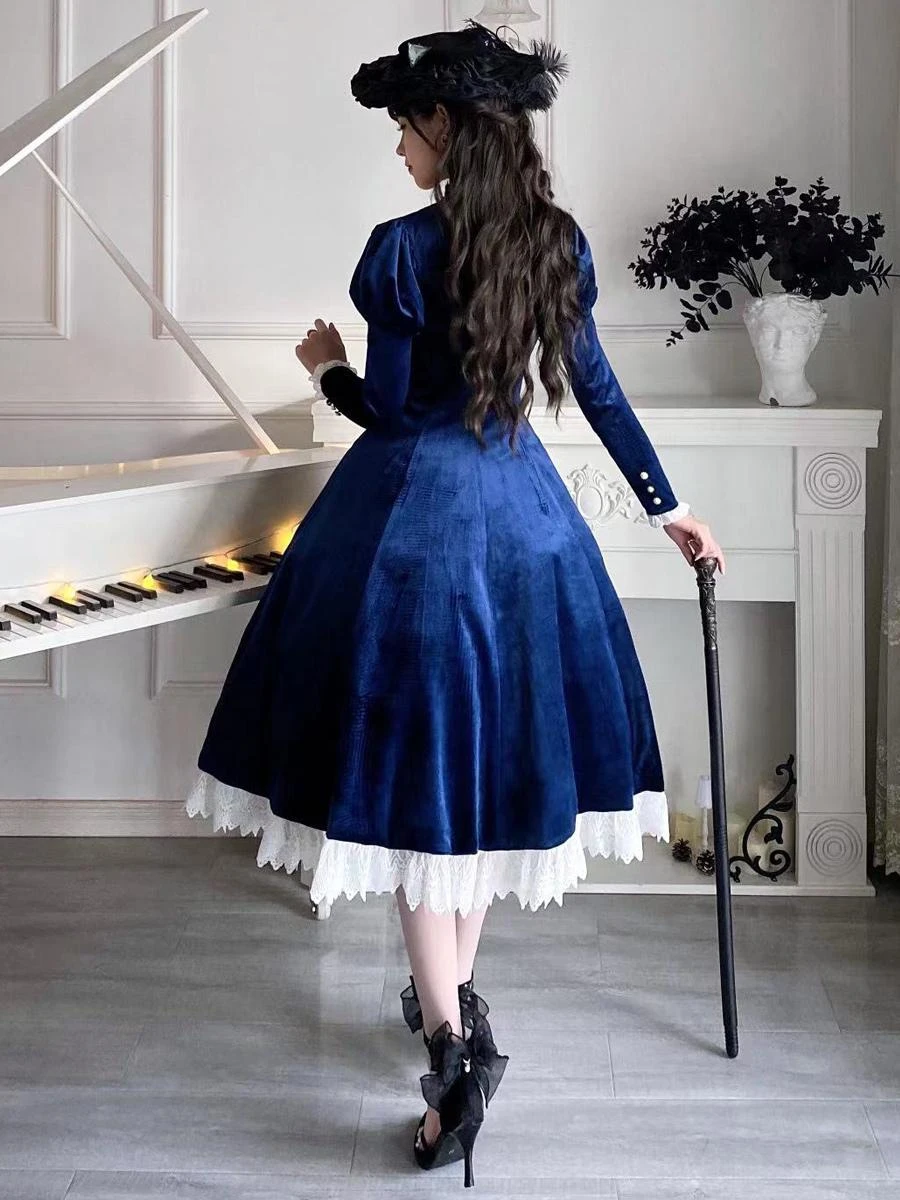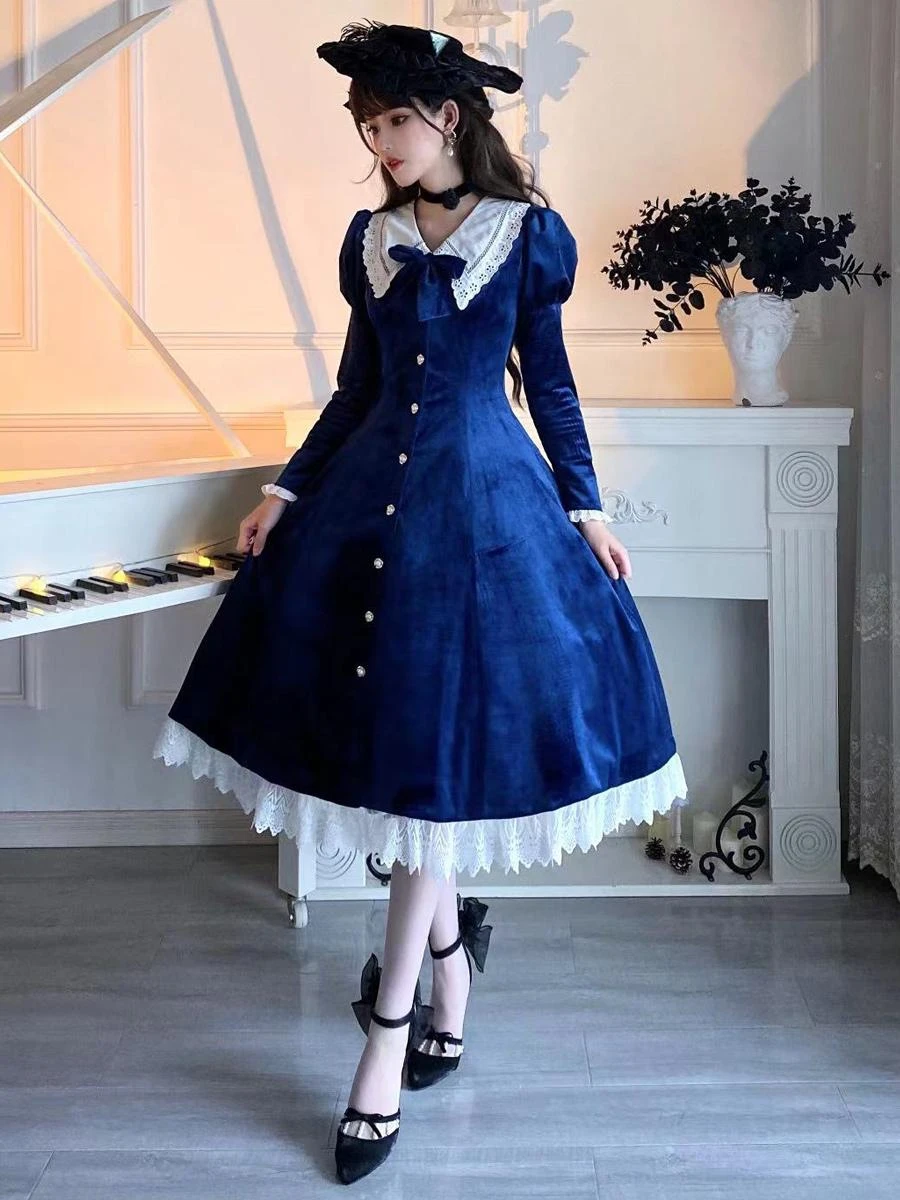 Be the first to review “Classical Lolita Dress Velour Short Sleeves Color Block Lolita Dresses Classic Deep Blue” Cancel reply