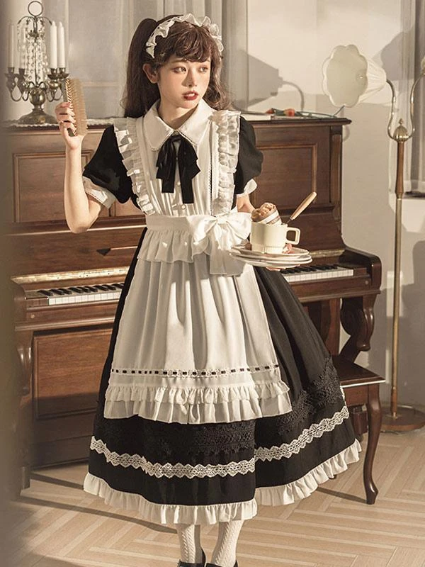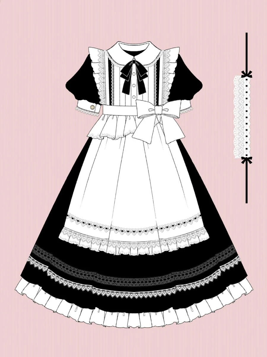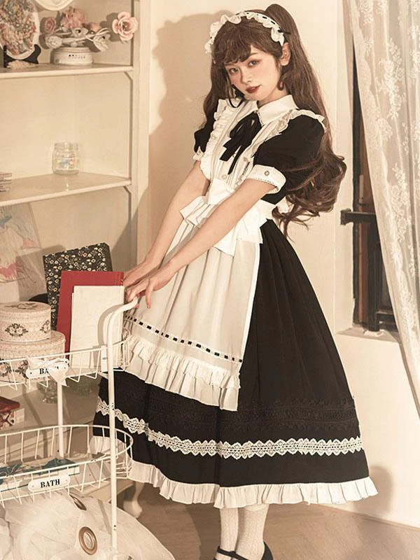 Be the first to review “Classical Lolita OP Dress 2-Piece Set Black Dress White Apron Ruffles Bows Color Block Bow Maid Dress” Cancel reply