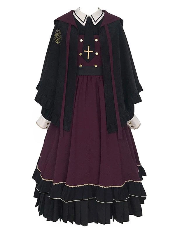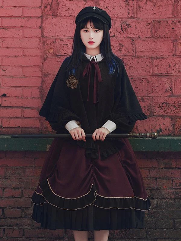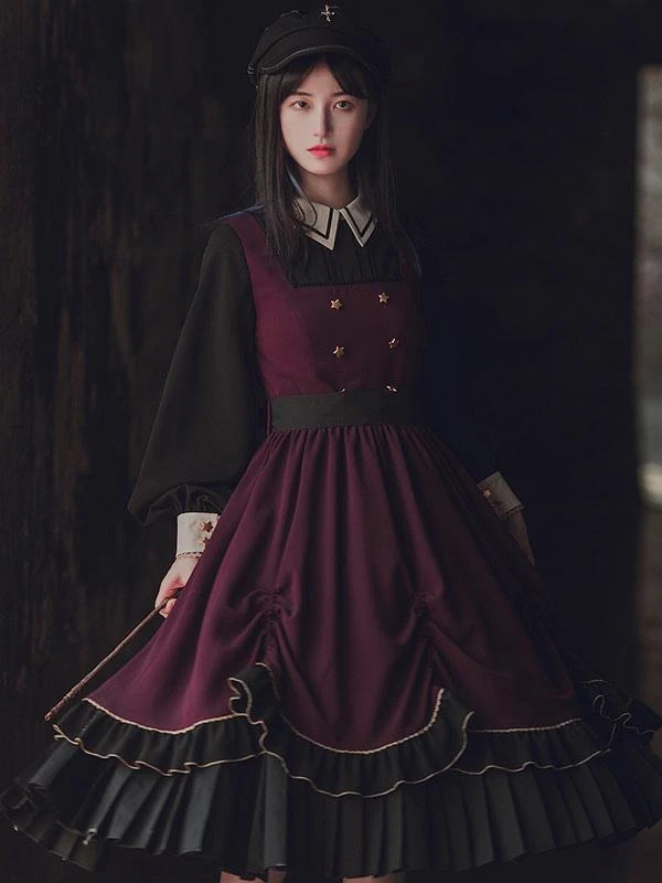 Be the first to review “Classical Lolita OP Dress Burgundy Ruffles Long Sleeve Cross Color Block Pattern Black Lolita One Piece Dress” Cancel reply