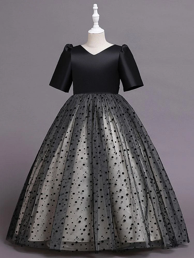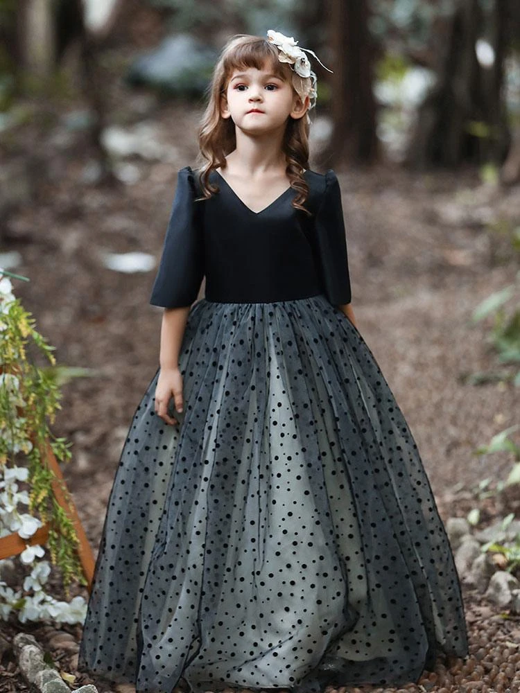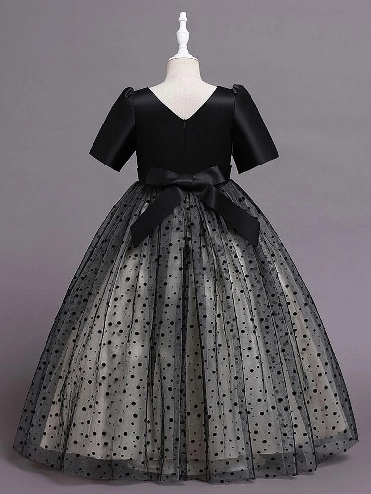 Be the first to review “Flower Girl Dress Cotton Blend Tiered V-Neck Short Sleeves Black” Cancel reply