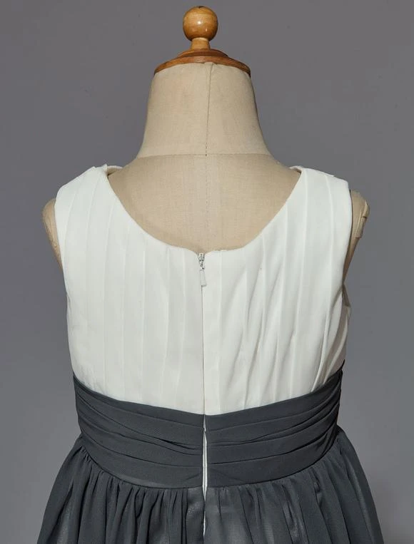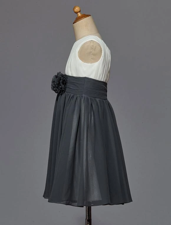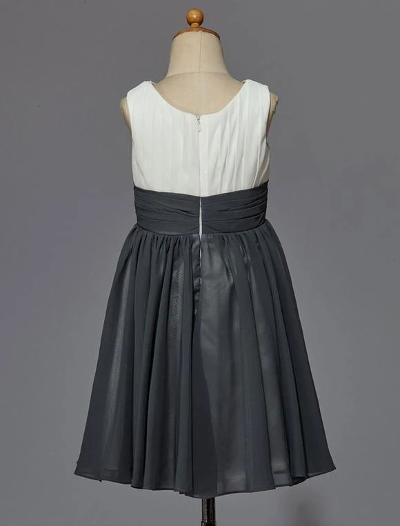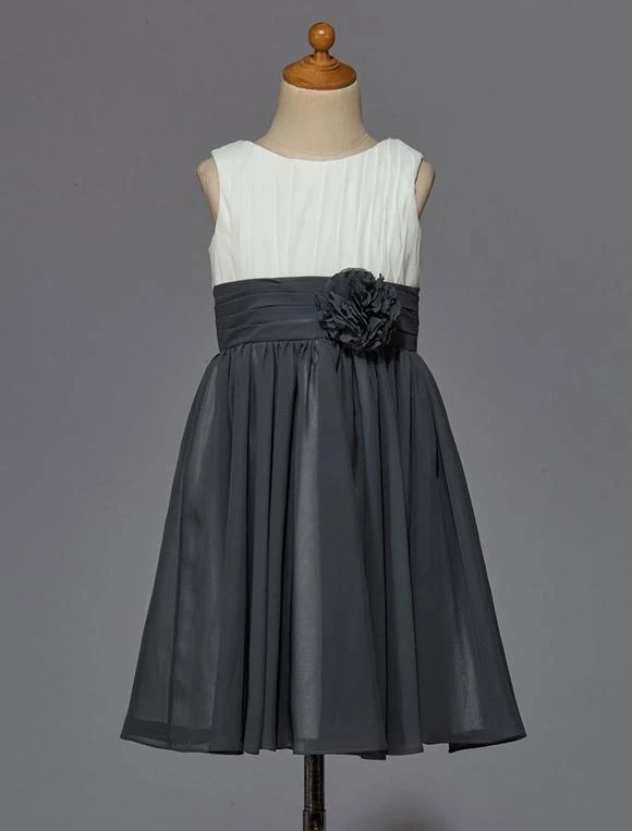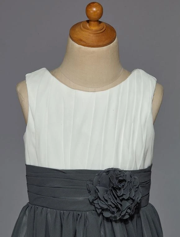 Be the first to review “Flower Girl Dress Ivory Grey Pleated Satin Chiffon Flower Sash Sleeveless Short Kids Party Dress” Cancel reply