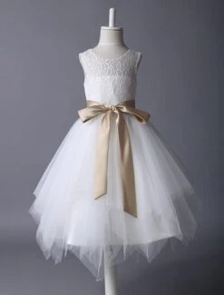 Be the first to review “Flower Girl Dress Lace Ivory Tutu Dress Satin Ribbon Bow Sash Illusion Kids Party Dress Free Customization” Cancel reply