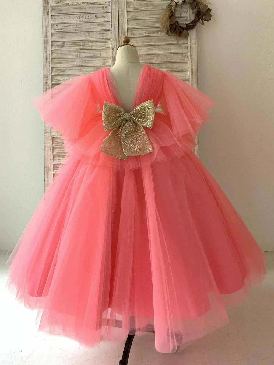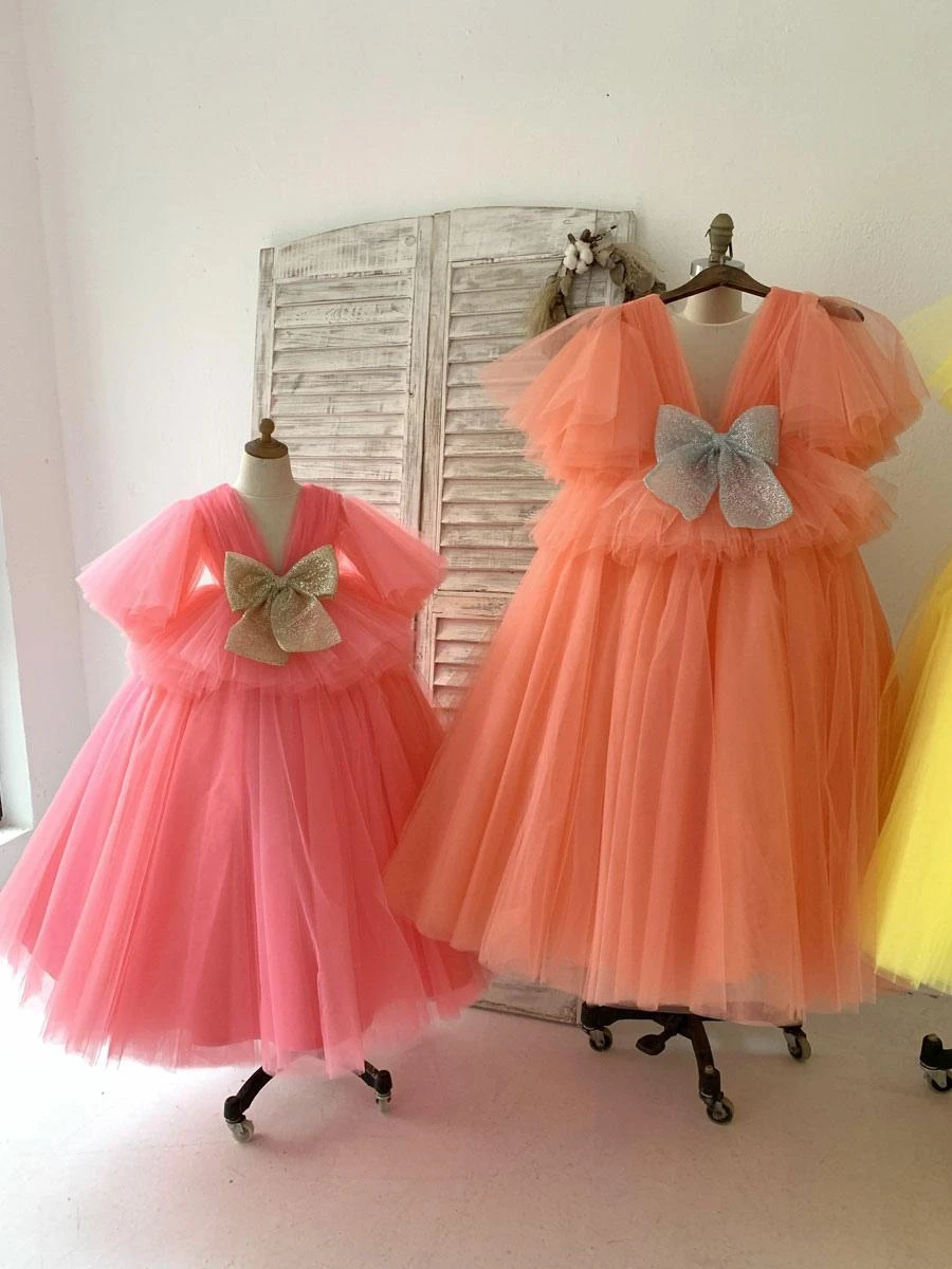Be the first to review “Flower Girl Dress Tulle Bows V-Neck Short Sleeves Yellow Free Customization” Cancel reply