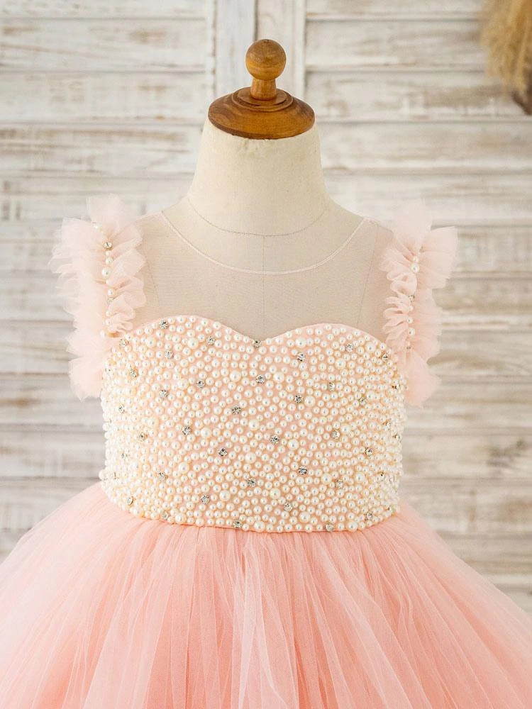 Be the first to review “Flower Girl Dress Tulle Pearls Jewel Neck Sleeveless Pink Free Customization” Cancel reply