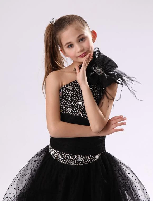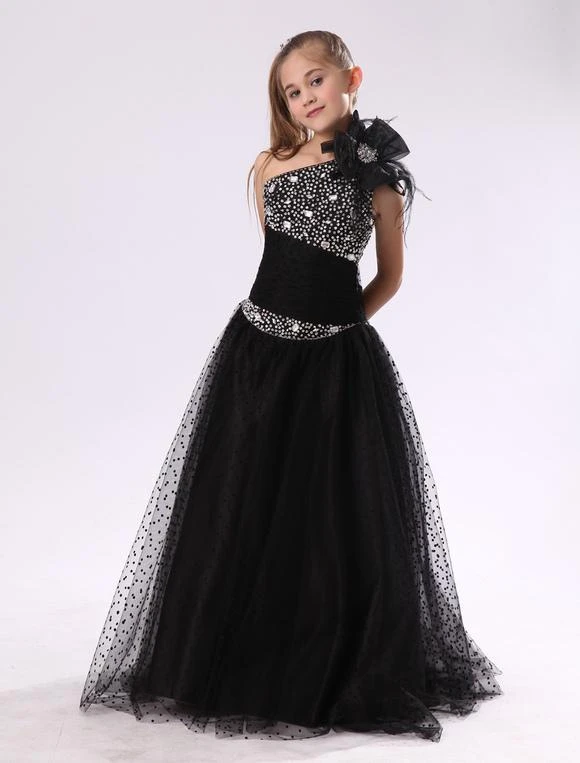 Be the first to review “Flower Girl Dresses Black One Shoulder Junior Bridesmaid Rhinestone Beaded Kids Pageant Dress” Cancel reply