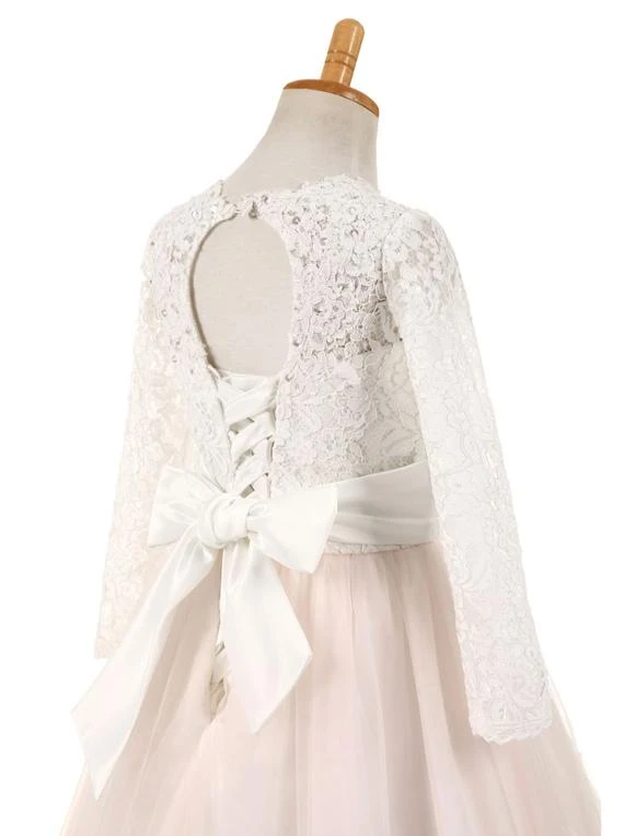 Be the first to review “Flower Girl Dresses Lace Tulle Bows Satin Pageant Dresses Round Neck Long Sleeve Sash Blush Pink Floor Length Party Dress” Cancel reply