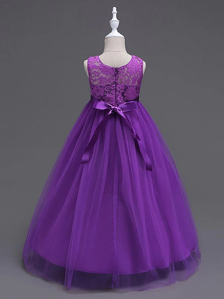 Children’s Sweet Lolita Dress Violet Blue Bows Polyester Short Sleeve Kids Princess One Piece Dress
