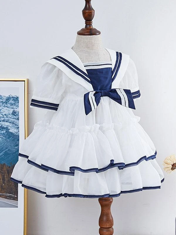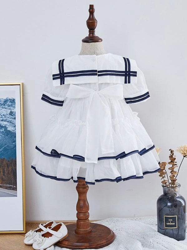 Be the first to review “Girls Dress Navy Style Bow Short Sleeves White Kids Dress” Cancel reply