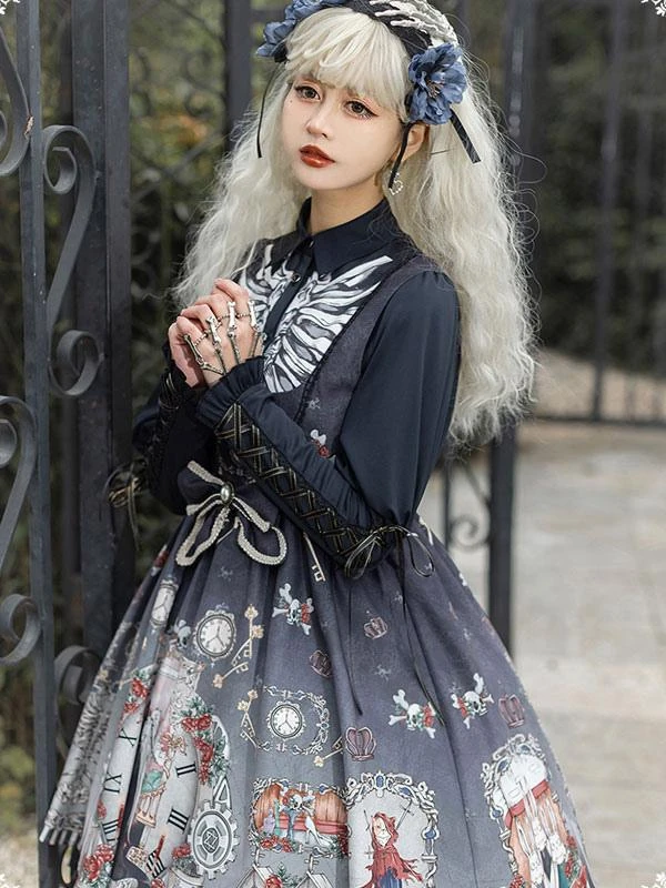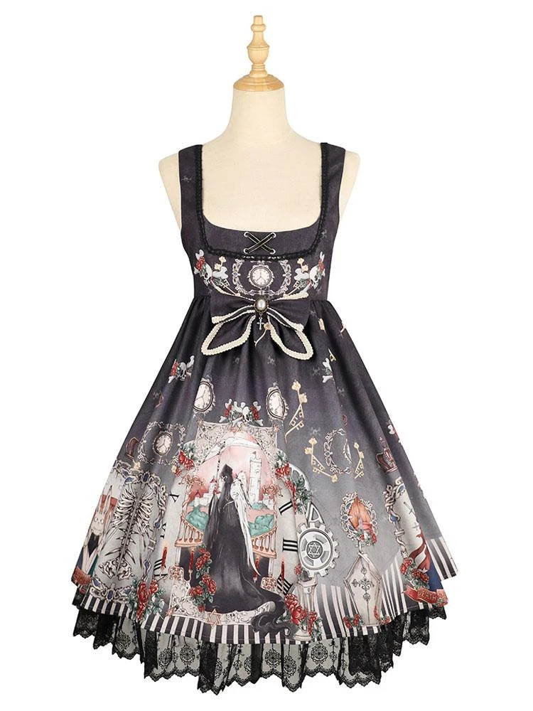 Be the first to review “Gothic Lolita JSK Dress Bows Sleeveless Skeleton Pattern Black Lolita Jumper Skirt” Cancel reply