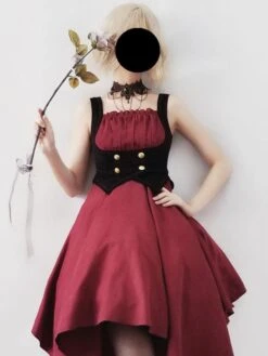 Be the first to review “Gothic Lolita JSK Dress Burgundy Sleeveless Ruffles Grommets Pleated Lolita Jumper Skirt” Cancel reply