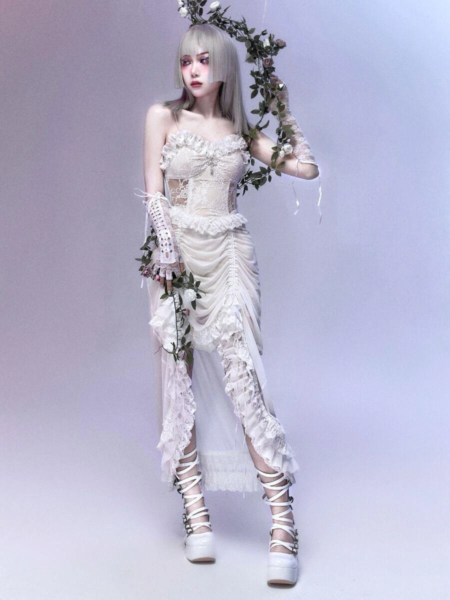 Be the first to review “Gothic Lolita JSK Dress Sleeveless Ruffles Lace Cross Pattern White Lolita Jumper Skirt” Cancel reply