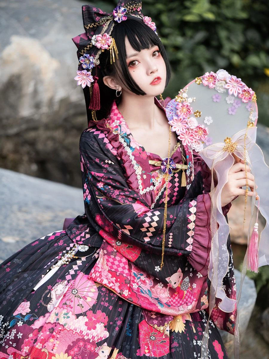Be the first to review “Japanese Style Lolita Dress 3-Piece Set Floral Print Sleeveless Bowknot Kimono Lolita Outfits” Cancel reply