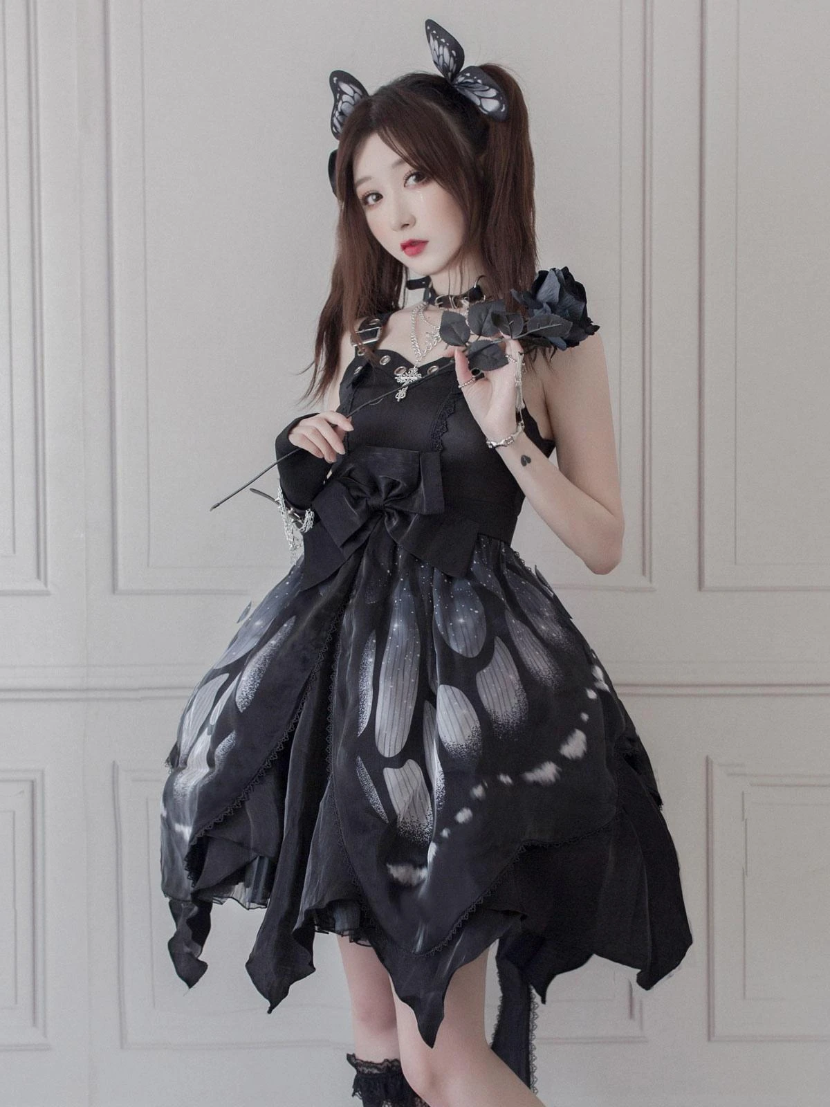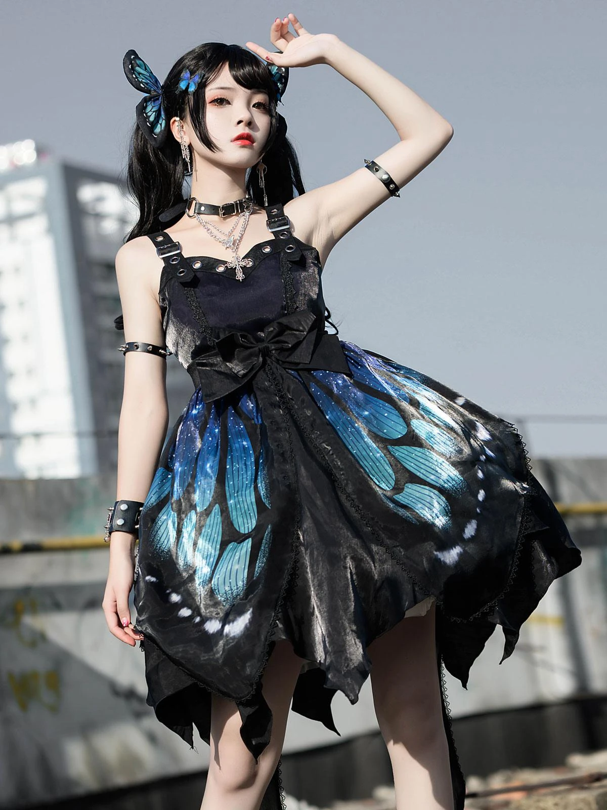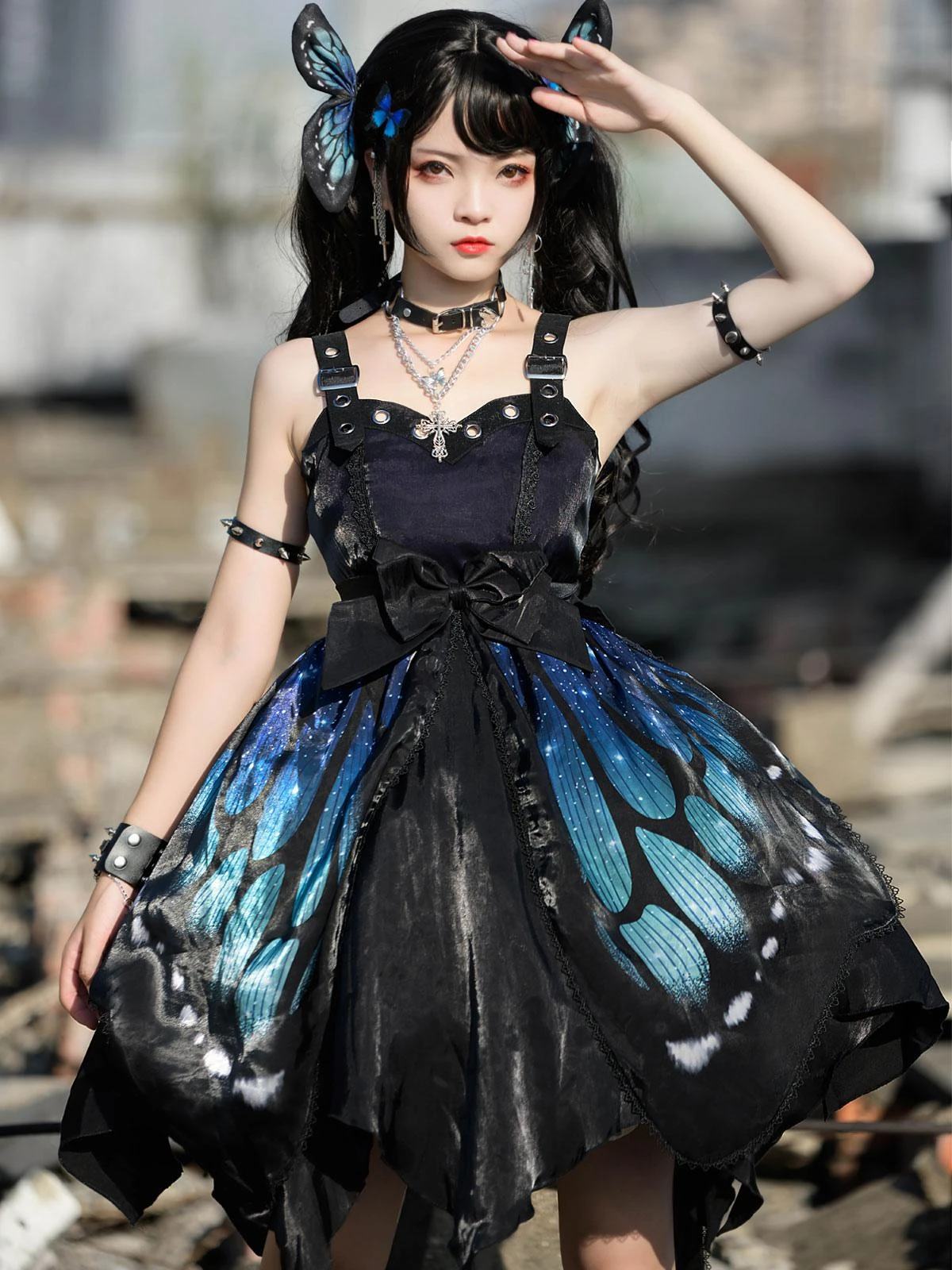 Be the first to review “JSK Gothic Lolita JSK Dress Blue Sleeveless Lace Up Ruffles Bow Butterfly Pattern Polyester Casual Lolita Jumper Skirt” Cancel reply