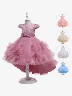 Be the first to review “Kids Dress Princess Party Dress Pearls Short Sleeves 5 Colors Flower Girl Dress” Cancel reply