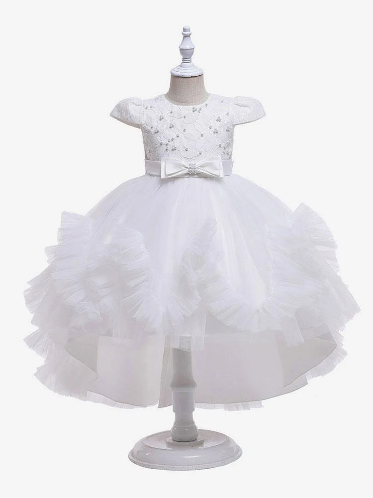 White Flower Girl Dresses Jewel Neck Sleeveless Bows Kids Party Dresses Short Princess Dress