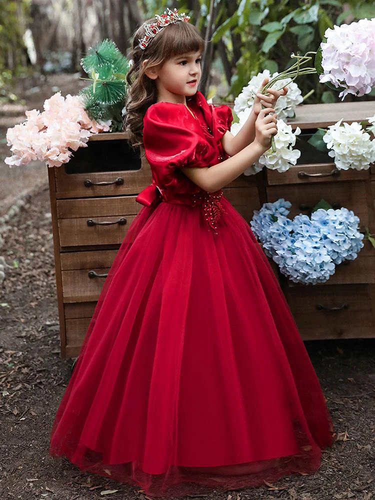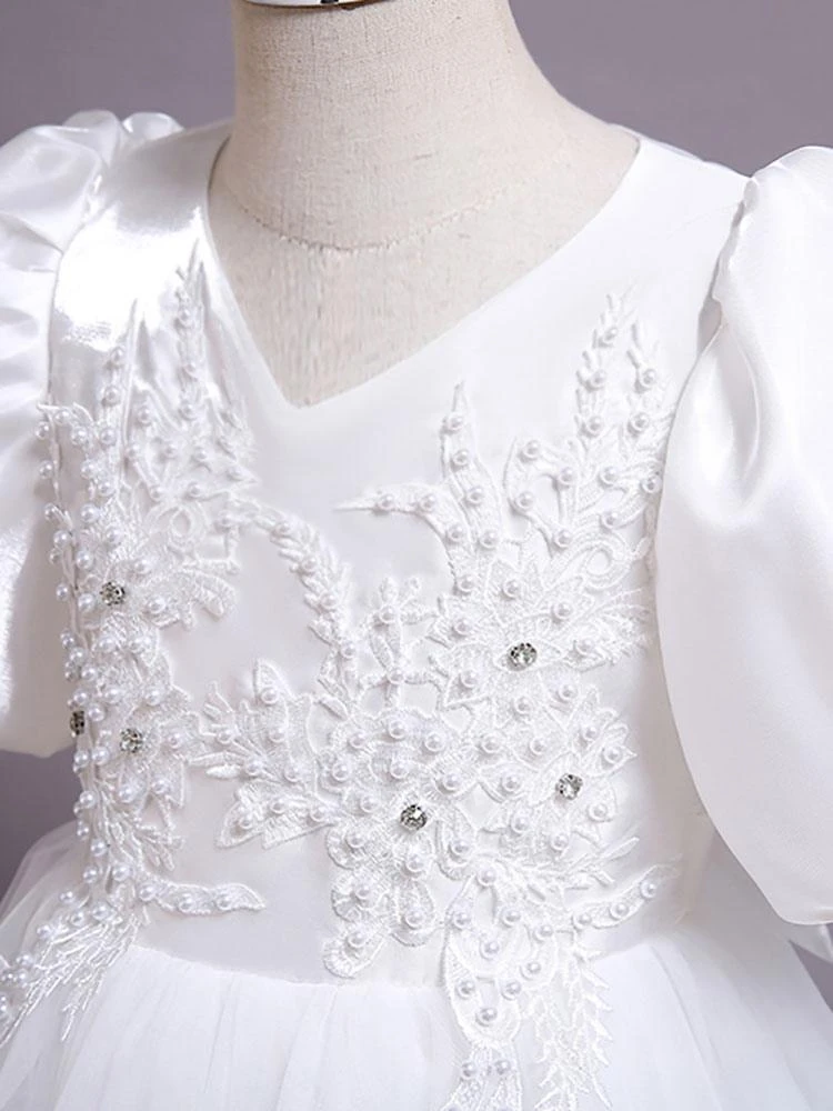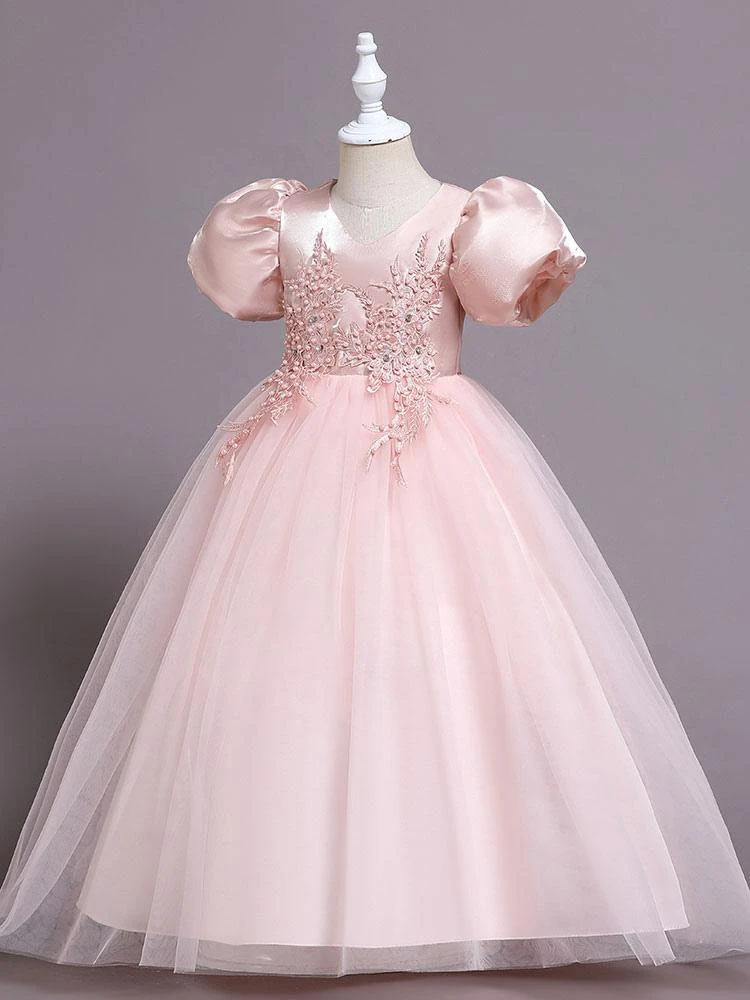Be the first to review “Kids Dress V-Neck Cotton Blend Applique Ankle-Length Short Sleeves Princess Silhouette Kids Party Flower Girl Dress” Cancel reply