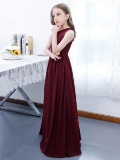 Burgundy Flower Girl Dress Chiffon Pleated One-Shoulder Sleeveless Kids Birthday Party Dresses