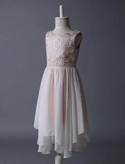 Blush Pink Flower Girl Boho Dress Tea Length Lace Chiffon Irregular Design Kids Party Dresses