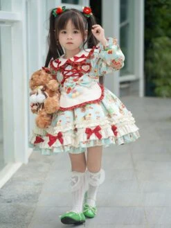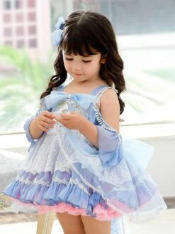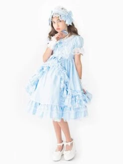 Rococo Lolita OP Dress Lace Trim Bow Ruffle Light Sky Blue Children Lolita One Piece Dress