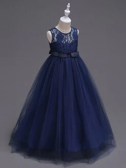 Flower Girl Dresses Princess Dark Navy Tutu Dress Sleeveless Lace Tulle Kids Pageant Dresses