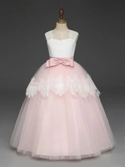 Flower Girl Dresses Princess Lilac Purple Lace Tulle Ribbon Bows Kids Tutu Party Dress