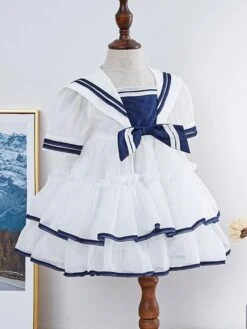 Flower Girl Dresses Navy Blue Sweetheart Neckline Tutu Dress Bow Sash Short Kids Formal Party Dress