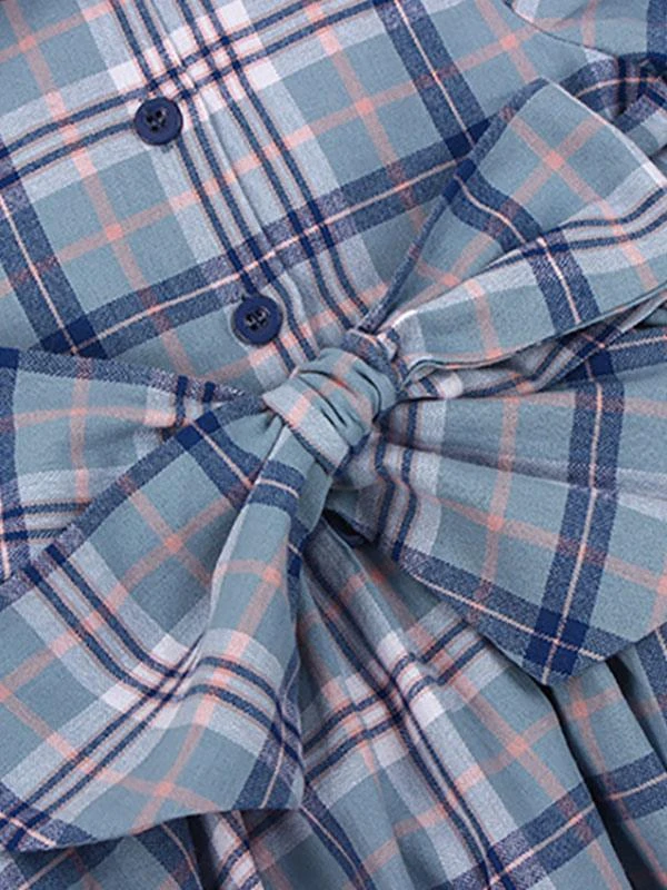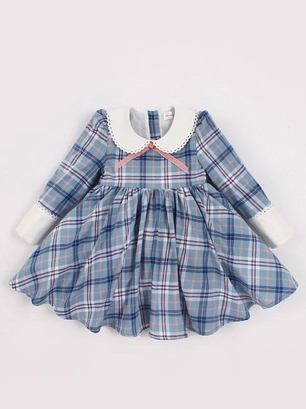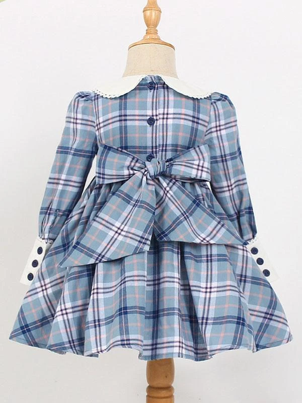 Children’s Sweet Lolita Dress Violet Blue Bows Polyester Short Sleeve Kids Princess One Piece Dress