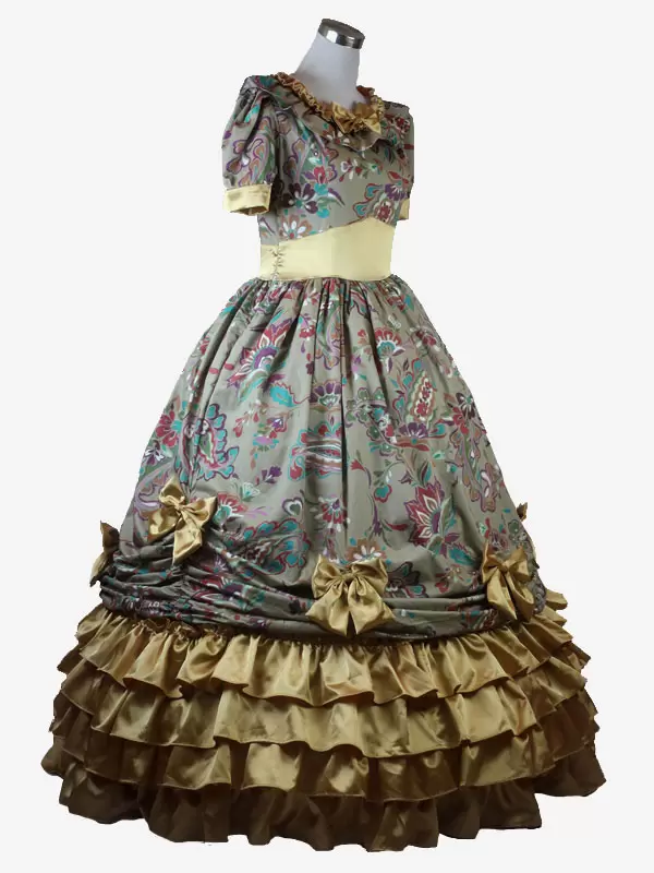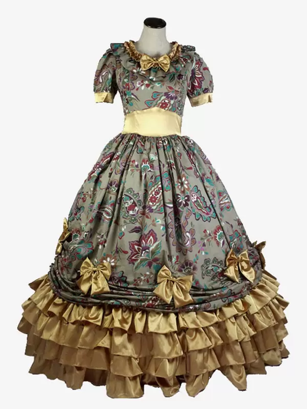Be the first to review “Light Brown Retro Costumes Women’s Floral Print Ruffles Bows Polyester Tunic Dress Marie Antoinette Costume Royal Vintage Clothing” Cancel reply