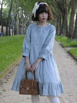 Classic Lolita OP Dress Frill Button Linen Lolita One Piece Dress