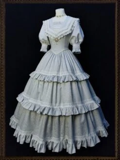Classical Lolita OP Dress Blue Gray Lace Ruffles Short Sleeves Lolita One Piece Dress