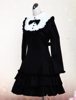 Lolitashow Cotton Black Long Sleeves Ruffle Classic Lolita Dress