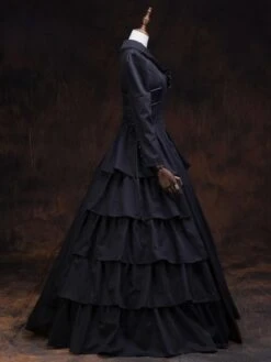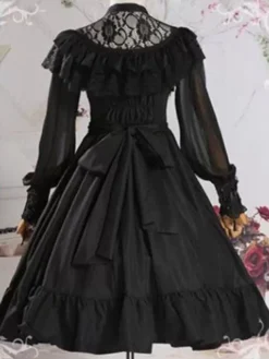 Women Black Dress Sweetheart Neck Long Sleeves Lace Polyester Gothic Dress