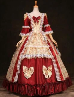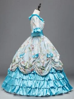Prom Dress Victorian Dress Rococo Royal Lace Trim Ruffles Printed Long Vintage Party Dress Halloween