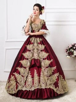 Prom Dress Victorian Dress Rococo Gold Ball Gown Half Sleeves Royal Retro Dress Halloween