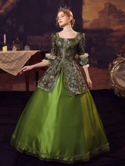 Prom Dress Victorian Dress Rococo Jacquard Dress Era Long Sleeves Green Vintage Dress With Hat