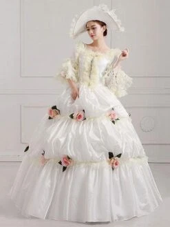Victorian Dress Costume Women’s Red Baroque Masquerade Ball Gowns Ruffles Trumpet Half Sleeves Dress