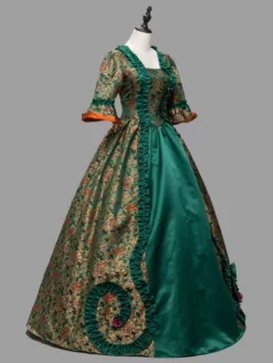 Green Vitorian Dress Costumes Ruffles Polyester Floral Print Marie Antoinette 1800s Dress