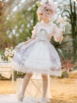 Sweet Lolita Graduation Dress Polyester Short Sleeves Ruffles Dress Sweet Lolita Dress